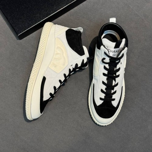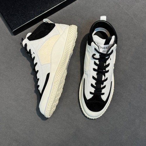 Бело-черные высокие кеды Chanel из натуральной замши и натуральной кожи. Классические кеды - неотъемлемая часть базового гардероба. Шнуровка надежно фиксирует модель на ноге, а мягкая стелька обеспечивает комфорт при любых обстоятельствах. В нашем интернет-магазине вы можете купить копии кед с доставкой по Москве и по всей России.