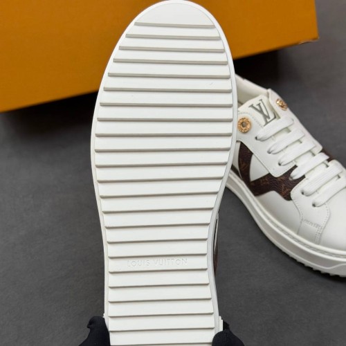 Белые кеды Louis Vuitton из натуральной кожи со вставками из канвы. Стильное решение, которое добавит непринужденности любому образу. За комфорт отвечает мягкая стелька и легкая подошва. В нашем интернет-магазине вы можете купить копии кед с доставкой по Москве и по всей России.