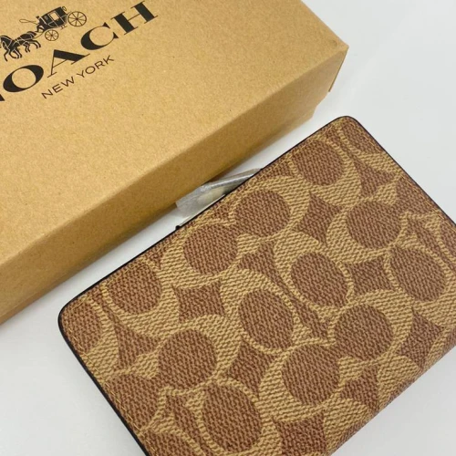 Бежевый кошелек Coach из натуральной кожи. Удачная и актуальная модель украшена узнаваемым принтом бренда и акцентирована белым клапаном. Этот стильный кошелек изготовлен из прочных материалов и великолепно подойдет любителям традиционных дизайнов. В нашем интернет-магазине вы можете купить копии кошельков с доставкой по Москве и по всей России.