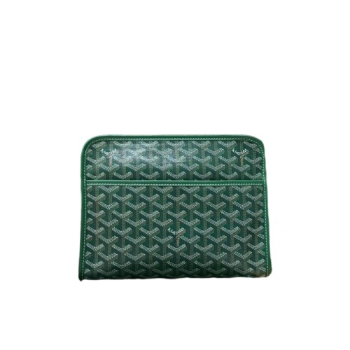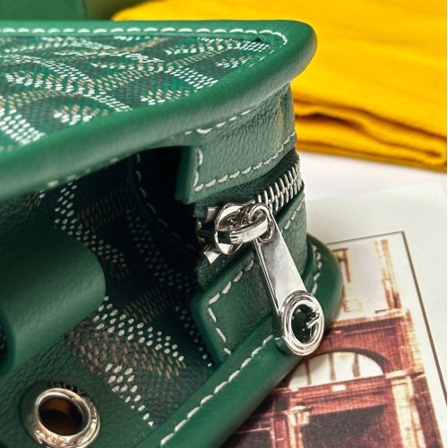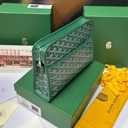 Зеленая косметичка Goyard из канвы и натуральной кожи. Косметичка как нельзя лучше подходит для путешествий, она не займет много места в багаже. Аксессуар оснащен замком на молнии, обеспечивающим надежное закрытие и быстрый доступ к содержимому. В нашем интернет-магазине вы можете купить копии косметичек с доставкой по Москве и по всей России.