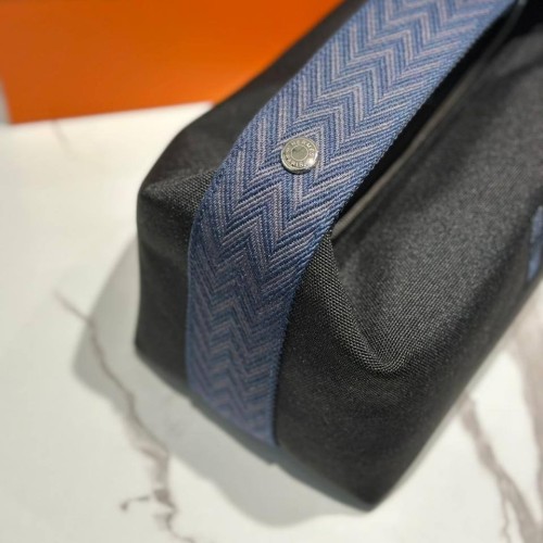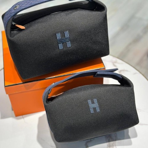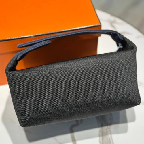 Серая косметичка Hermes из текстиля. Форма косметички идеально подходит для вертикального размещения вещей и предотвращения проливаний. Водонепроницаемая подкладка легко чистится, ручка позволяет закрепить косметичку где угодно. В нашем интернет-магазине вы можете купить копии косметичек с доставкой по Москве и по всей России.