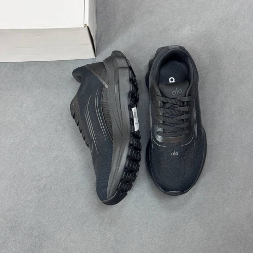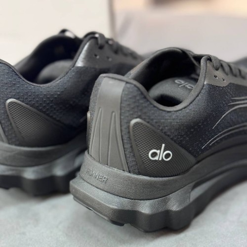 Черные кроссовки Alo из ткани и сетки. Удобные и универсальные кроссовки, которые легко впишутся в ваш гардероб. За счет округлой носочной части, широкого устойчивого подошвы и фиксирующей шнуровки вы будете чувствовать комфорт в течение всего дня. В нашем интернет-магазине вы можете купить копии кроссовок с доставкой по Москве и по всей России.