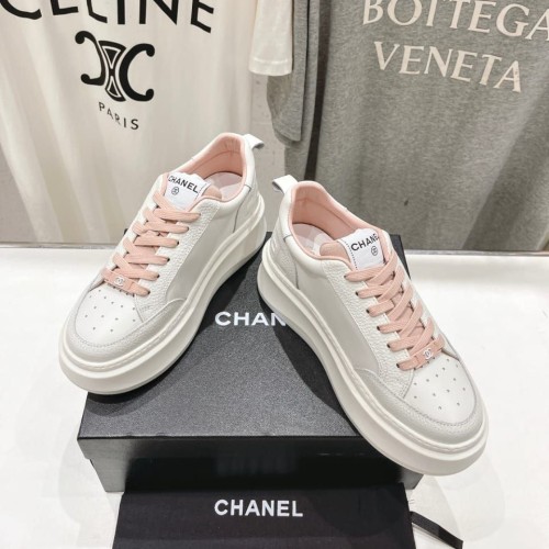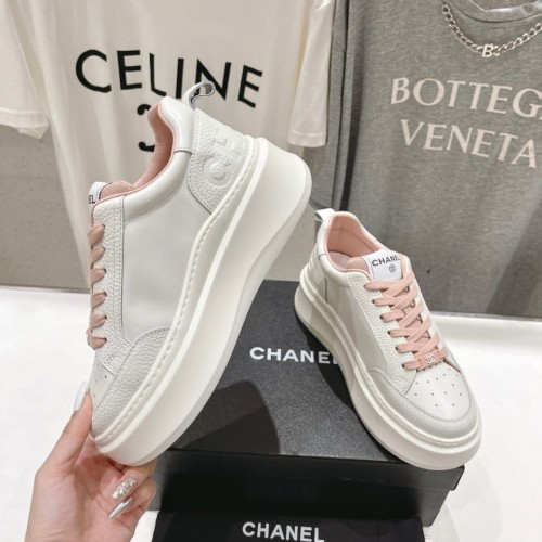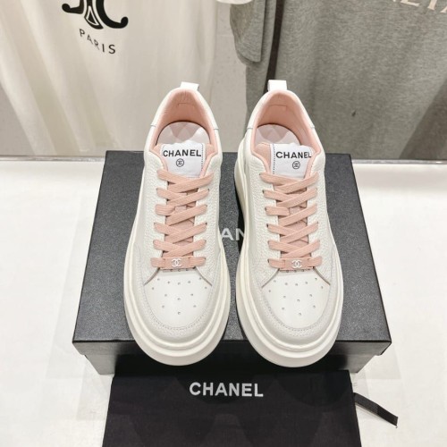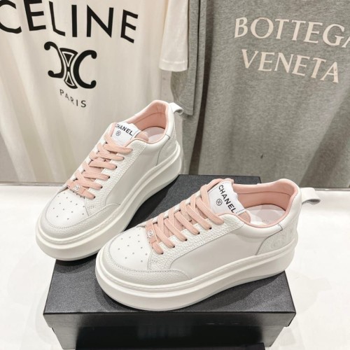 Белые кроссовки Chanel с розовыми вставками из натуральной кожи. В дизайне кроссовок из новой коллекции на первое место выходят чистота линий и графичность. Модель выполнена из натуральной кожи в белом цвете и дополнена контрастной розовой шнуровкой. В нашем интернет-магазине вы можете купить копии кроссовок с доставкой по Москве и по всей России.