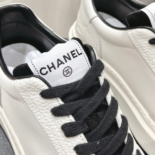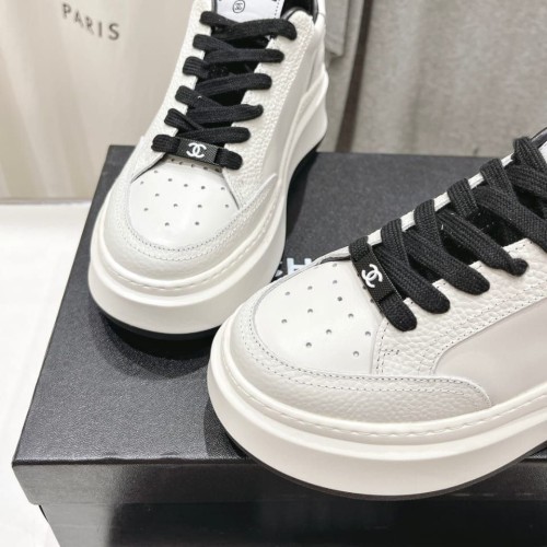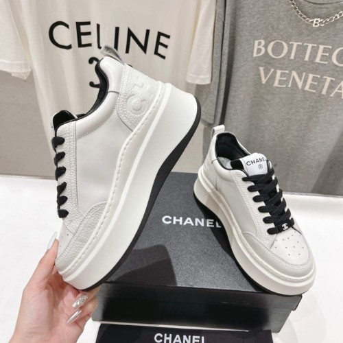 Белые кроссовки Chanel с черными вставками из натуральной кожи. Переосмысление классических кроссовок в кутюрном духе Дома. Легкая подошва, продуманная конструкция и удобные черные шнурки делают кроссовки комфортными для активных будней. В нашем интернет-магазине вы можете купить копии кроссовок с доставкой по Москве и по всей России.