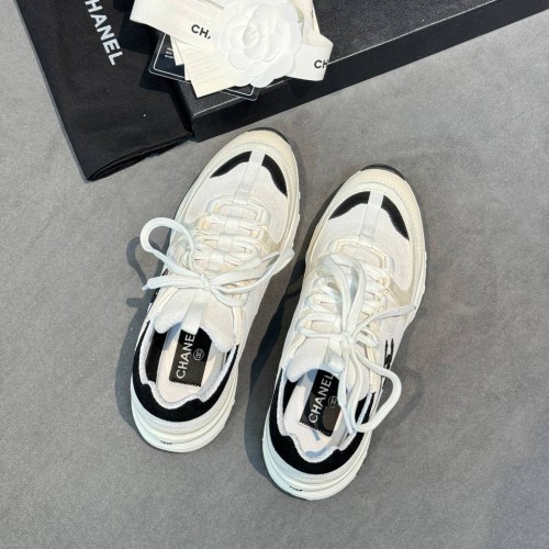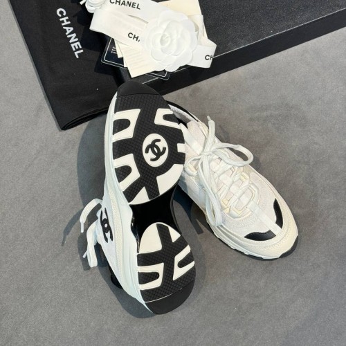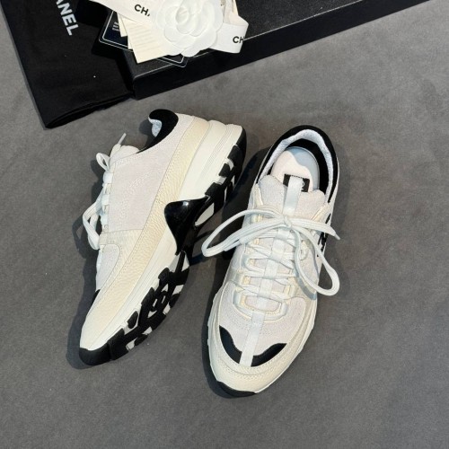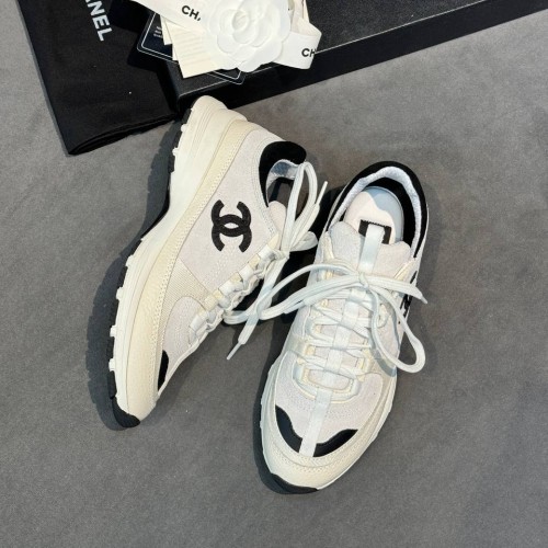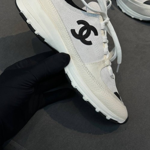 Белые женские кроссовки Chanel из натуральной замши и натуральной кожи. Комбинированные кроссовки создана для тех, кто ценит классику и комфорт - пара обладает всеми достоинствами вневременной модели. Практичности добавляют шнурки, которые позволяют надежно зафиксировать ногу. В нашем интернет-магазине вы можете купить копии кроссовок с доставкой по Москве и по всей России.