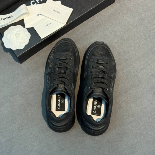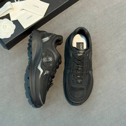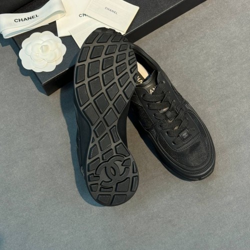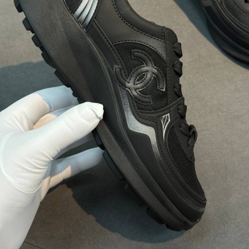 Черные кроссовки Chanel из натуральной кожи и сетки. Кроссовки созданы для тех, кто предпочитает спортивный стиль в любую погоду. Базовый черный цвет смягчает футуристичный силуэт и делает модель более универсальной. В нашем интернет-магазине вы можете купить копии кроссовок с доставкой по Москве и по всей России.