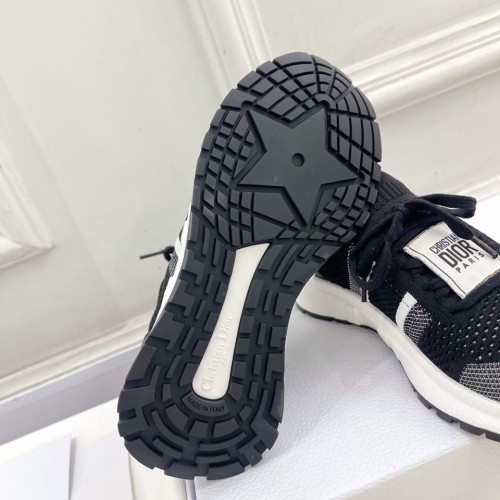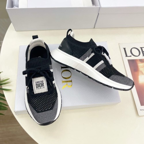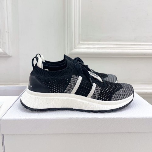 Черно-белые женские кроссовки Dior из и текстиля. В кроссовках будет комфортно во время долгого рабочего дня, прогулок на природе или на шопинге с подругами - подошва из облегченной резины амортизирует, снижая нагрузку на стопу. Для максимального комфорта изделие дополнили шнуровкой и мягкой стелькой. В нашем интернет-магазине вы можете купить копии кроссовок с доставкой по Москве и по всей России.