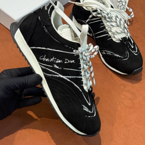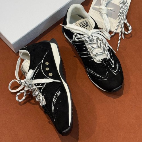 Динамичные черные кроссовки Christian Dior из натуральной замши. Шнуровка надежно фиксирует модель на ноге, а мягкая стелька обеспечивает комфорт при любых обстоятельствах. Минималистичные кроссовки поддержат множество стилизаций не только в спортивных, но и в актуальных повседневных сочетаниях. В нашем интернет-магазине вы можете купить копии кроссовок с доставкой по Москве и по всей России.