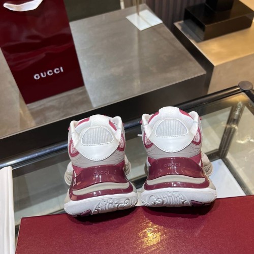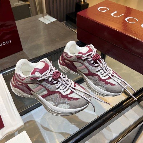 Бело-серые женские кроссовки Gucci с бордовыми вставками из натуральной кожи и текстиля. Кроссовки динамичной формы - предмет гардероба, с которым любые сочетания будут выглядеть актуально. Модель дополнена комфортной мягкой стелькой. Акцентная деталь - тонкие цветные акценты, которые разбавляют монохромность кроссовок. В нашем интернет-магазине вы можете купить копии кроссовок с доставкой по Москве и по всей России.