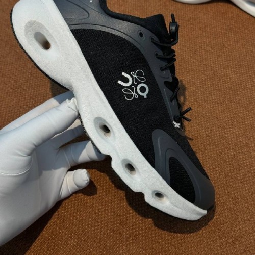 Черные кроссовки Loewe из натуральной мягкой кожи и текстиля. Кроссовки из новой коллекции объединяют в себе выразительность, комфорт и лаконичность. Классический черный цвет делает дизайн сдержанным и универсальным. Модель дополнена белой подошвой с контрастным основанием. В нашем интернет-магазине вы можете купить копии кроссовок с доставкой по Москве и по всей России.