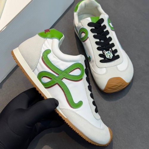 Белые кроссовки Loewe из натуральной мягкой замши и ткани. Комфортная стелька и анатомически продуманный дизайн делают кроссовки незаменимым элементом повседневных образов в стиле спорт-шик и эффектным дополнением к смелым стилистическим решениям. В нашем интернет-магазине вы можете купить копии кроссовок с доставкой по Москве и по всей России.