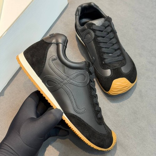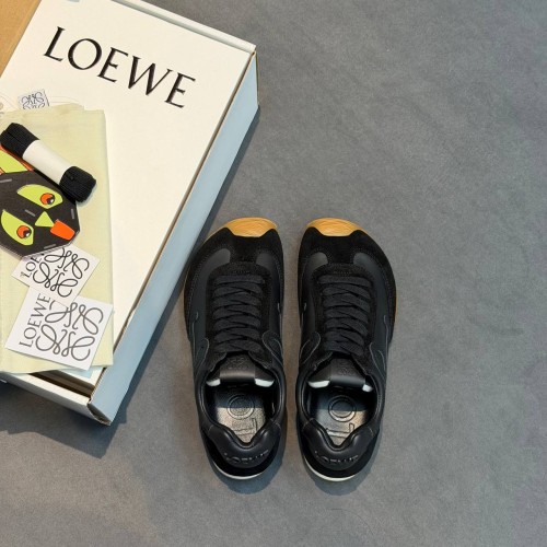 Черные кроссовки Loewe из натуральной кожи и натуральной замши. Черные кроссовки динамичной формы предмет гардероба, с которым любые сочетания будут выглядеть актуально. Модель выполнена из комбинации материалов и дополнена комфортной мягкой стелькой. В нашем интернет-магазине вы можете купить копии кроссовок с доставкой по Москве и по всей России.