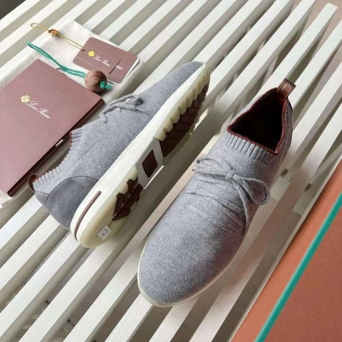 Серые кроссовки Loro Piana с замшевой пяткой из текстиля. Кроссовки из весенне-летней коллекции марки, основанной Пьетро Лоро Пьяна, органично впишутся в яркий городской образ. Модель создает непринужденно привлекательную цветовую комбинацию, что делает ее идеальным сочетанием функциональности и эксклюзивного стиля. Чтобы каждый ваш шаг был наполнен комфортом и легкостью, в модели используется анатомическая стелька. В нашем интернет-магазине вы можете купить копии кроссовок с доставкой по Москве и по всей России.