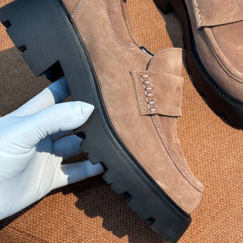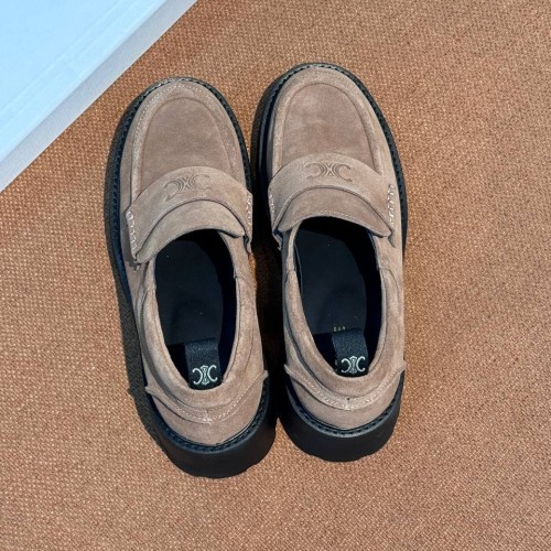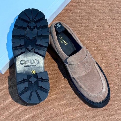 Кремовые лоферы Celine из натуральной замши. Новая модель лоферов - это совокупность лаконичности, свойственной ретро-моделям, и современных деталей. Пара дополнена выразительной черной платформой. В нашем интернет-магазине вы можете купить копии лоферов с доставкой по Москве и по всей России.