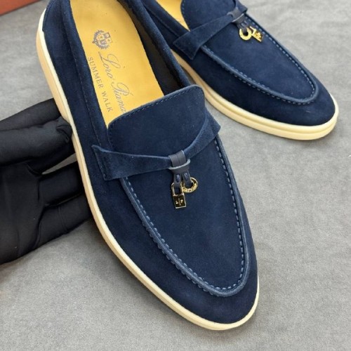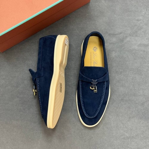 Женские синие лоферы Loro Piana из натуральной замши. Удобные и универсальные лоферы, которые легко впишутся в ваш гардероб. За счет округлой носочной части, широкого устойчивого каблука и мягкой стелькой вы будете чувствовать комфорт в течение всего дня. В нашем интернет-магазине вы можете купить копии лоферов с доставкой по Москве и по всей России.