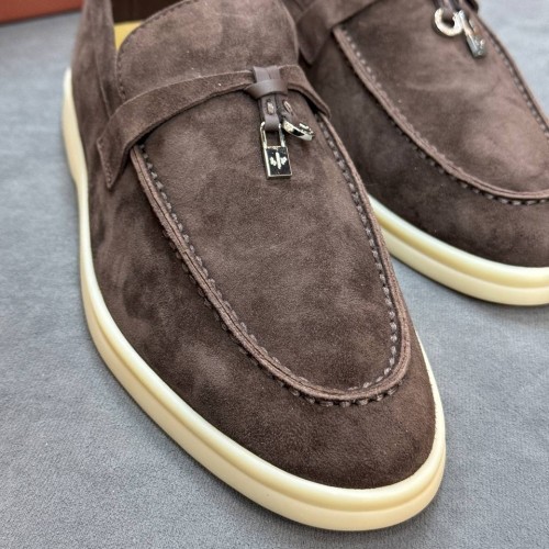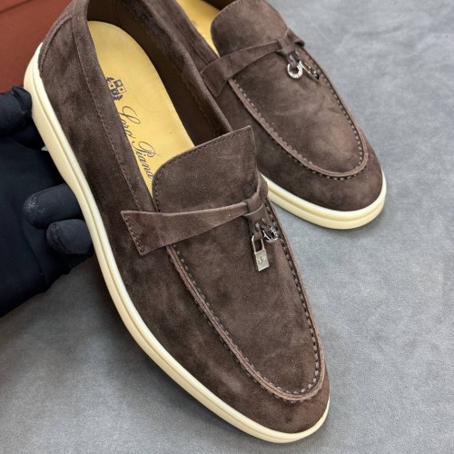 Женские коричневые лоферы Loro Piana из натуральной замши. Удобство и практичность - всегда решающие факторы в поиске той самой пары, поэтому в модели из новой коллекции помимо актуального силуэта лоферов дизайнеры соединили натуральную замшу, небольшой устойчивый каблук и универсальный коричневый цвет. Носите изделие с жакетом или кардиганом и джинсами: всегда беспроигрышный вариант для повседневных образов. В нашем интернет-магазине вы можете купить копии лоферов с доставкой по Москве и по всей России.