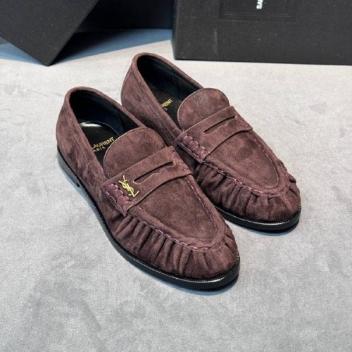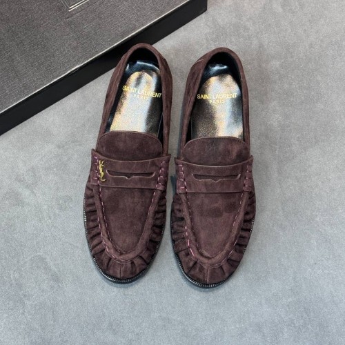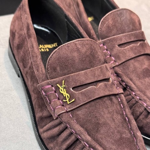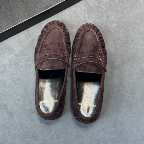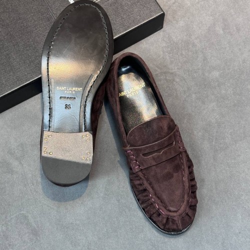 Стильные лоферы Saint Laurent шоколадного оттенка из натуральной замши. В дизайне лоферов из новой коллекции на первое место выходят чистота линий и графичность. Модель дополнена контрастной черной подошвой. Лоферы подчеркнут легкость романтичных сочетаний и сдержанность деловых. В нашем интернет-магазине вы можете купить копии лоферов с доставкой по Москве и по всей России.