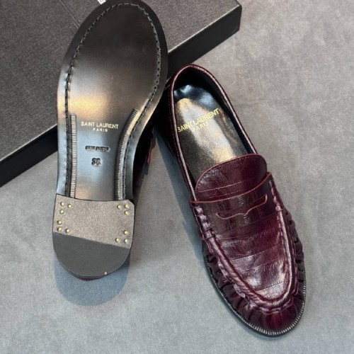 Бордовые лоферы Saint Laurent из натуральной кожи. Качественная фактура, яркий оттенок и лаконичный дизайн делают эту модель незаменимой в базовом гардеробе. Легкая подошва не скользит и обеспечивает комфортный и уверенный шаг. Мягкая стелька и продуманная форма отвечают за то, чтобы эта пара стала частым дополнением ваших образов. В нашем интернет-магазине вы можете купить копии лоферов с доставкой по Москве и по всей России.