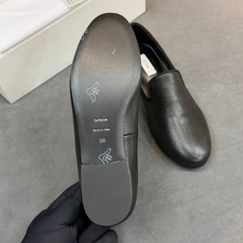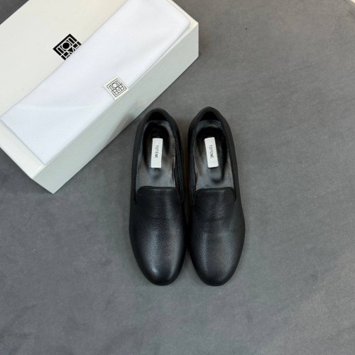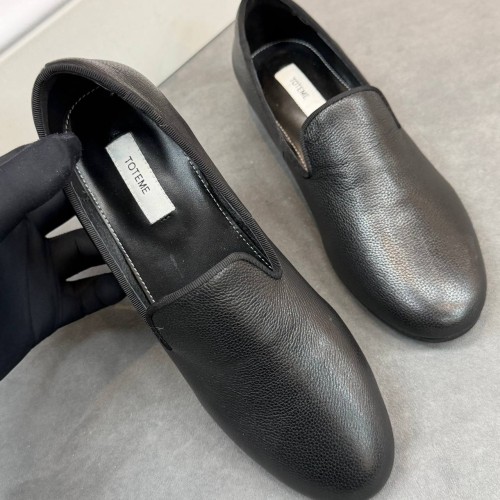 Черные лоферы Toteme из натуральной кожи. Выразительная фактура и лаконичный дизайн делают пару универсальной для гардероба. Устойчивый каблук, а также стелька с супинатором позволяют чувствовать себя комфортно на протяжении всего дня. В нашем интернет-магазине вы можете купить копии лоферов с доставкой по Москве и по всей России.