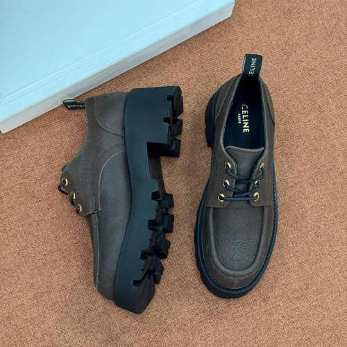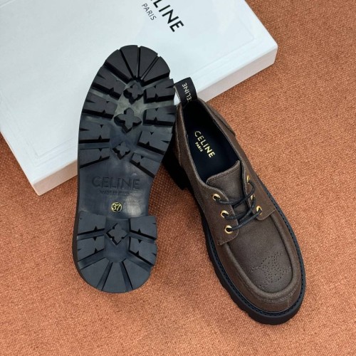 Коричневые мокасины Celine из натуральной кожи. Мокасины, которые прямо сейчас притягивают больше всего внимания - минималистичные, закрытые и без дополнительной фурнитуры. Модель выполнена из натуральной кожи коричневого цвета и дополнена контрастной черной завышенной подошвой с протектором. В нашем интернет-магазине вы можете купить копии мокасин с доставкой по Москве и по всей России.