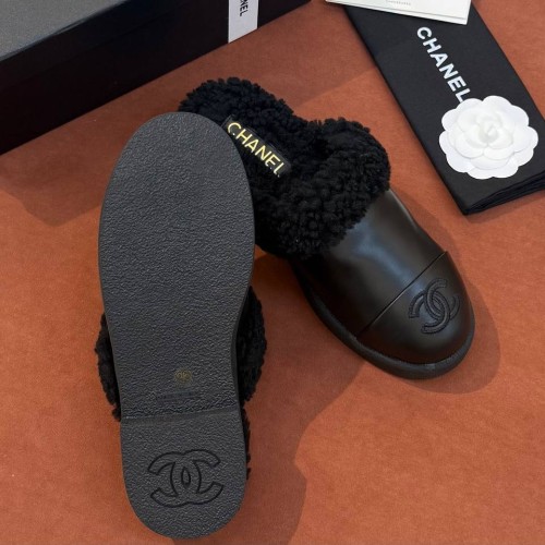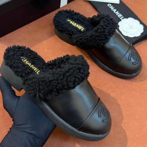 Черные женские мюли Chanel из натуральной кожи и овчины. Эти мюли появились в новой коллекции, чтобы даже на прогулке или в офисе вы чувствовали себя как дома. На удобном каблуке, с открытой пяткой и с подкладкой из натурального меха - изделие повторяет силуэт комфортной домашней обуви. В нашем интернет-магазине вы можете купить копии мюли с доставкой по Москве и по всей России.