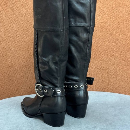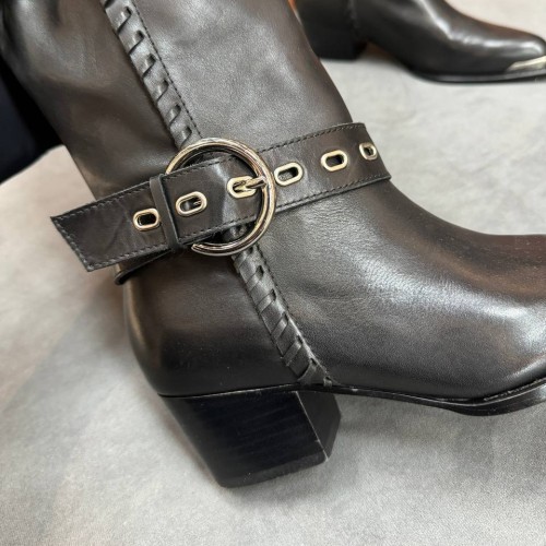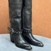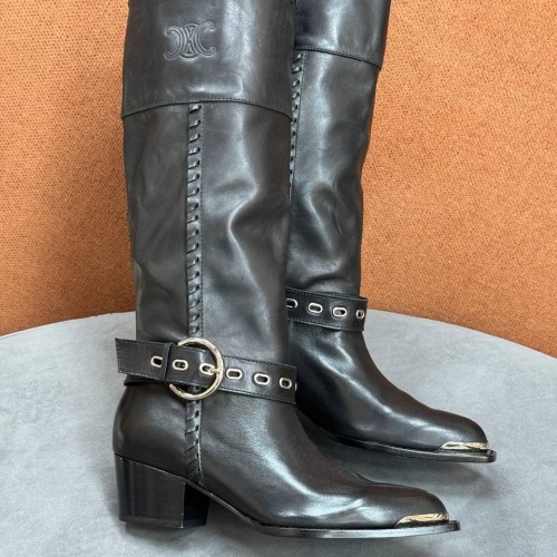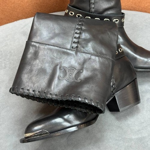 Женские черные сапоги Celine из натуральной кожи. Акцентная и в то же время универсальная пара для повседневных или бохо-сочетаний. Дизайн дополнен акцентной серебряной фурнитурой. Такое решение моментально придает паре яркий характер и позволяет экспериментировать со стилизациями. В нашем интернет-магазине вы можете купить копии сапог с доставкой по Москве и по всей России.