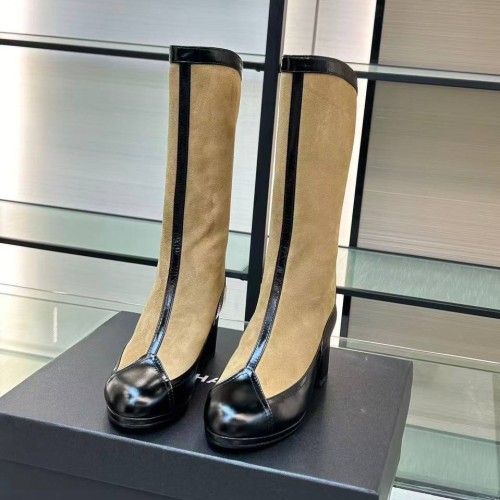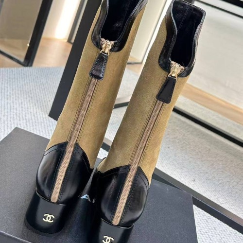 Женские горчично-черные сапоги Chanel из натуральной замши и натуральной кожи. Сапоги, основным акцентом в дизайне которых стал лаконичный контраст двух благородных оттенков. Пара на устойчивом каблуке легко впишется в стилизации с джинсами, зауженными брюками или юбками-миди и станет стильным вариантом для завершения образа. В нашем интернет-магазине вы можете купить копии сапог с доставкой по Москве и по всей России.