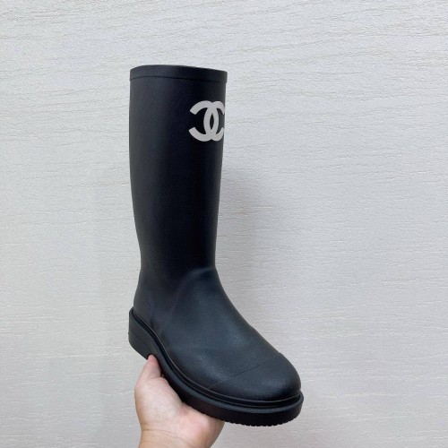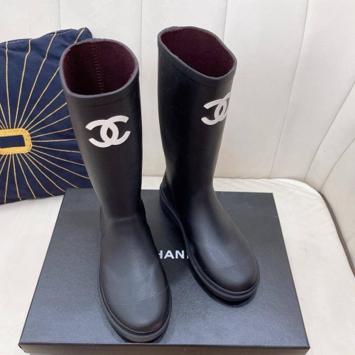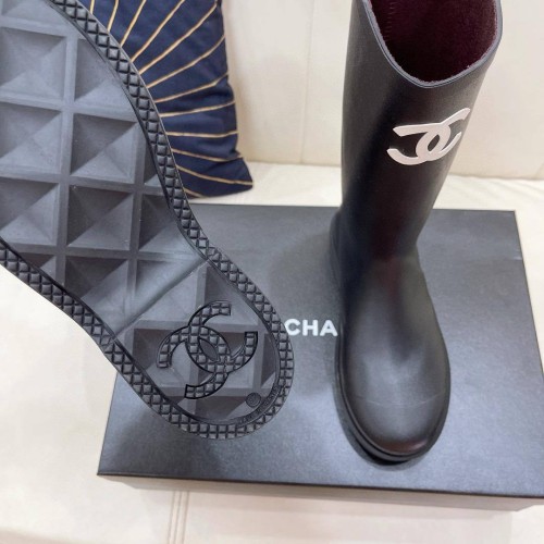 Черные женские сапоги Chanel из резины. Лаконичный дизайн сапог из новой коллекции делает пару универсальной и базовой моделью модного гардероба. Эта модель легко станет ключевой деталью, добавив индивидуальности. В нашем интернет-магазине вы можете купить копии сапог с доставкой по Москве и по всей России.