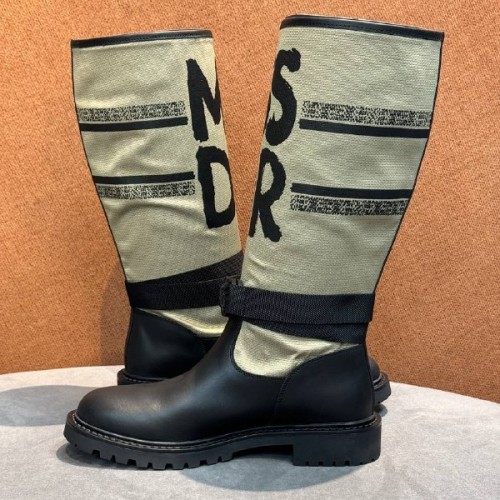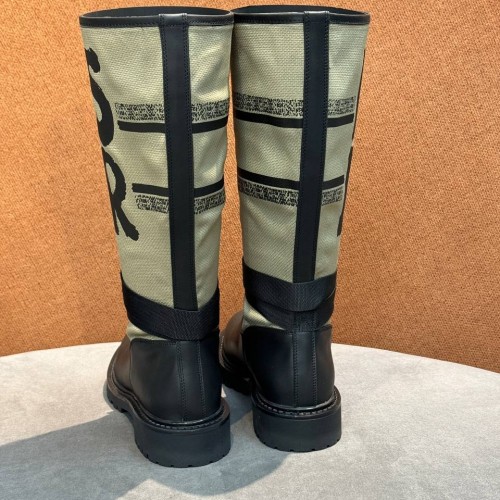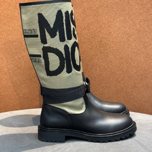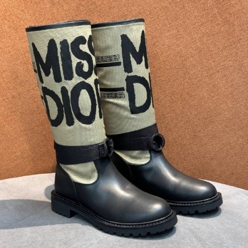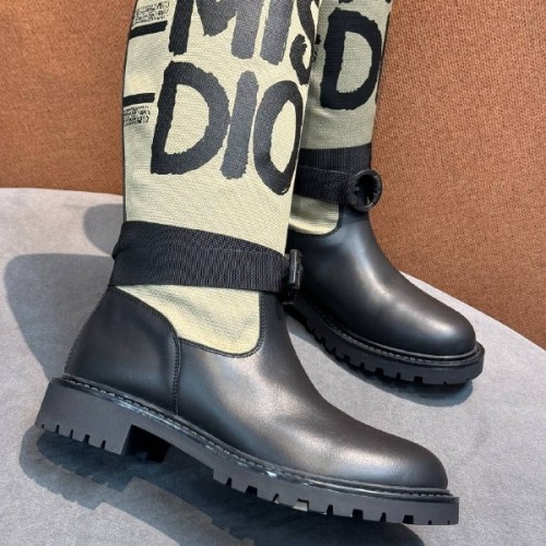 Черные сапоги Cristian Dior из натуральной кожи и ткани. Эффектная модель в современном стиле. Полоса с вышитой надписью Miss Dior. Модель имеет регулируемый ремешок на щиколотке и рифленую подошву. В нашем интернет-магазине вы можете купить копии сапог с доставкой по Москве и по всей России.