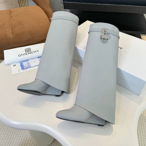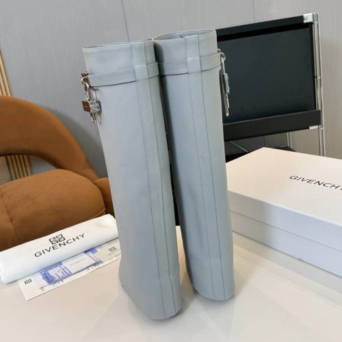 Светло-серые сапоги - трубы Givenchy из натуральной кожи. Сапоги - яркий пример того, как хорошо знакомая классика стала трендом. Секрет успеха пары в том, что ее легко можно вписать в большинство повседневных образов для прохладного сезона. Голенище дополнили традиционным акцентом - узкими ремешками с пряжкой. В нашем интернет-магазине вы можете купить копии сапог с доставкой по Москве и по всей России.