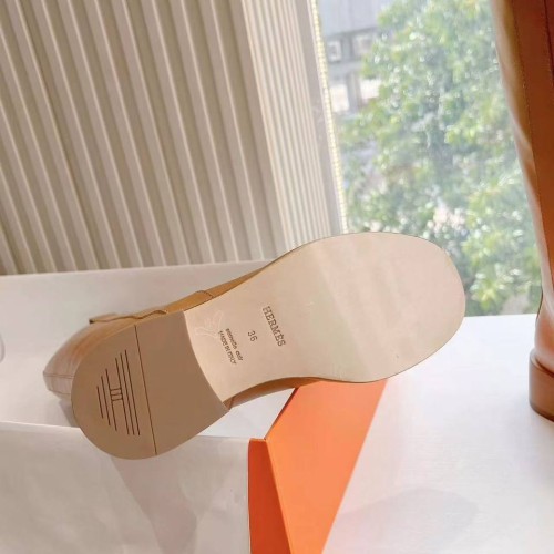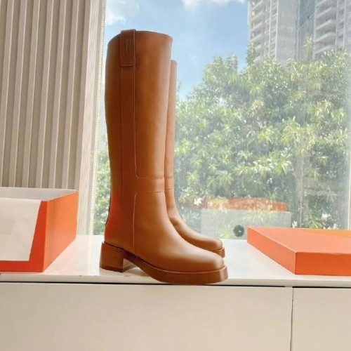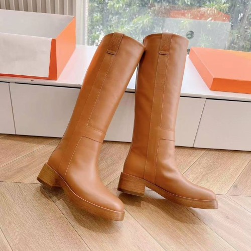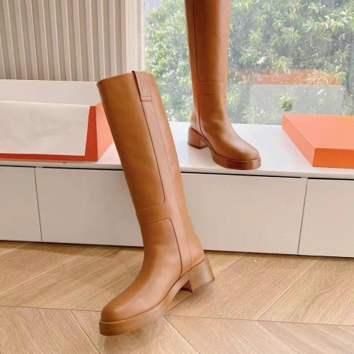Коричневые женские сапоги Hermes из натуральной кожи. В новой коллекции дизайнеры разработали модель с небольшой платформой и каблуком. Сапоги комфортно сидят на ногах, что позволяет им стать идеальным дополнением к повседневным сочетаниям. В нашем интернет-магазине вы можете купить копии сапог с доставкой по Москве и по всей России.