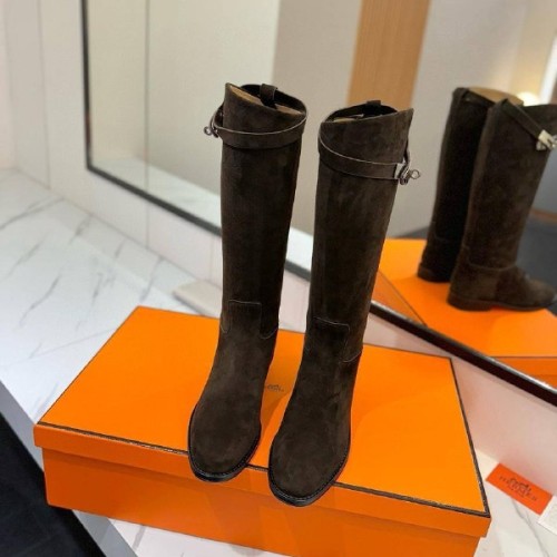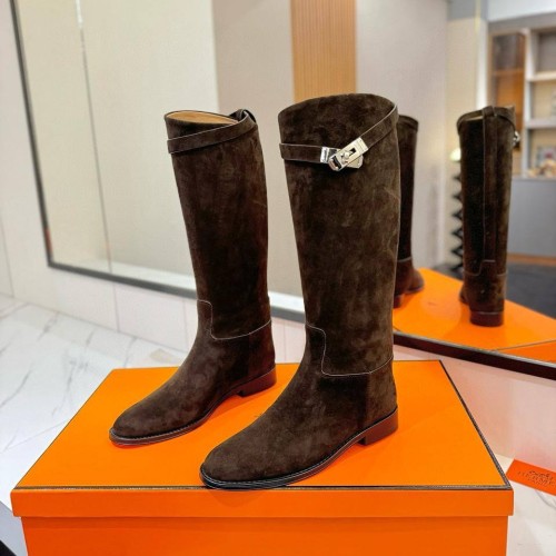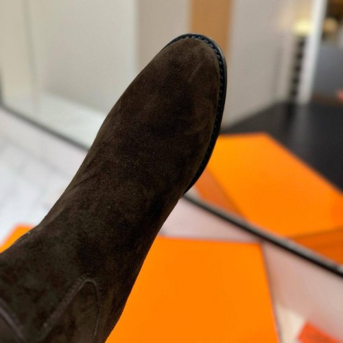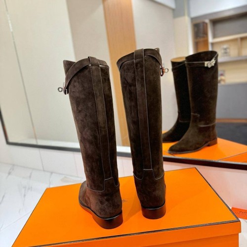 Коричневые женские сапоги Hermes из натуральной замши. Сапоги, созданные с особым вниманием к деталям и конструкции. Изделие выполнено из натуральной замши глубокого коричневого оттенка Moro. Дизайнеры подчеркнули модель приталенным голенищем, которое эффектно контрастирует с узкой носочной частью и устойчивым каблуком. В нашем интернет-магазине вы можете купить копии сапог с доставкой по Москве и по всей России.