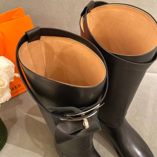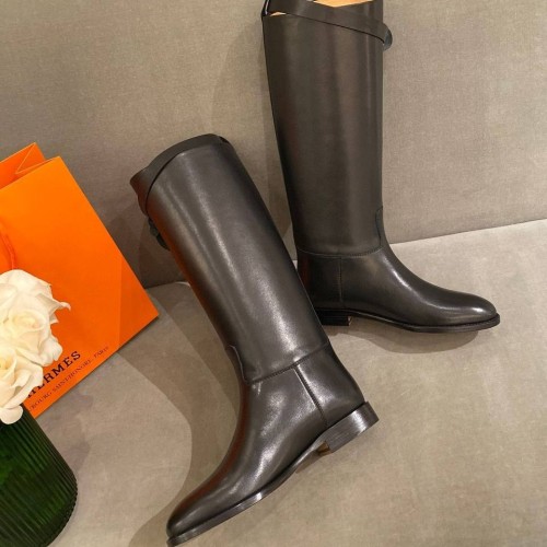 Черные женские сапоги Hermes из натуральной кожи. Жокейские сапоги - модель, которая точно выручит вас осенью. Для уверенной походки сапоги дополнены небольшим каблуком и двухкомпонентной набойкой. В нашем интернет-магазине вы можете купить копии сапог с доставкой по Москве и по всей России.