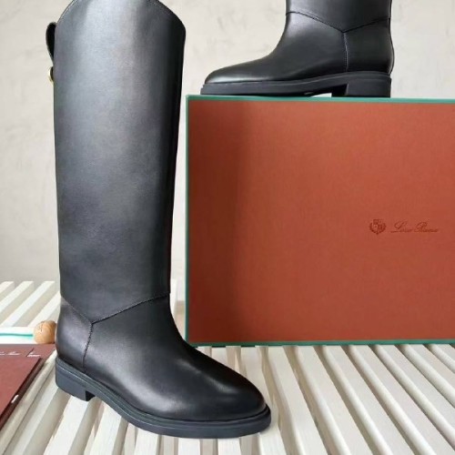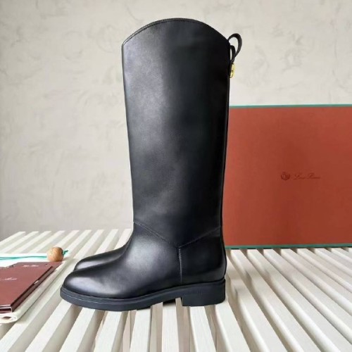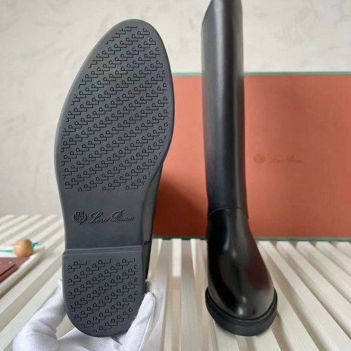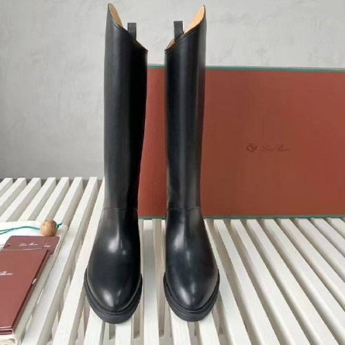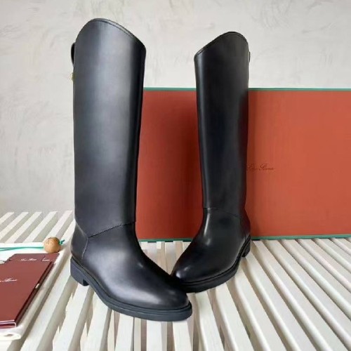 Женские черные сапоги Loro Piano из натуральной кожи. Жокейские сапоги - отличный выбор для создания стильных образов с платьями и юбками в межсезонье. Широкое голенище не только обеспечивает качественную циркуляцию воздуха, но и дарит простор для стильных экспериментов. В нашем интернет-магазине вы можете купить копии сапог с доставкой по Москве и по всей России.