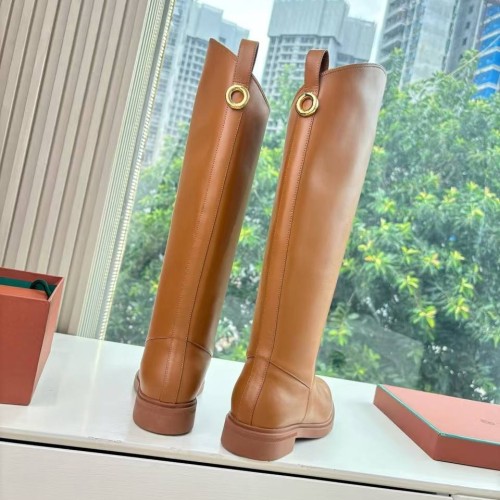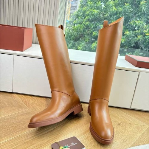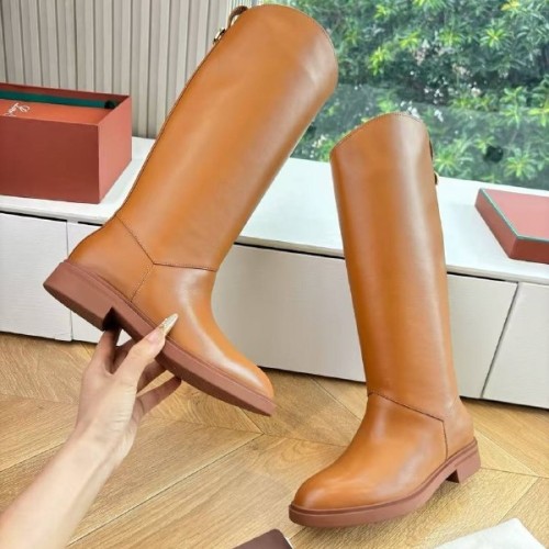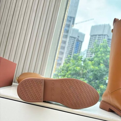 Женские рыжие сапоги Loro Piano из натуральной кожи. Сапоги из натуральной кожи на низком каблуке - универсальная основа для разнообразных образов. Эта модель легко вписывается как в ансамбли с юбками и платьями, так и в более повседневные сочетания с брюками или джинсами, заправленными внутрь. В нашем интернет-магазине вы можете купить копии сапог с доставкой по Москве и по всей России.