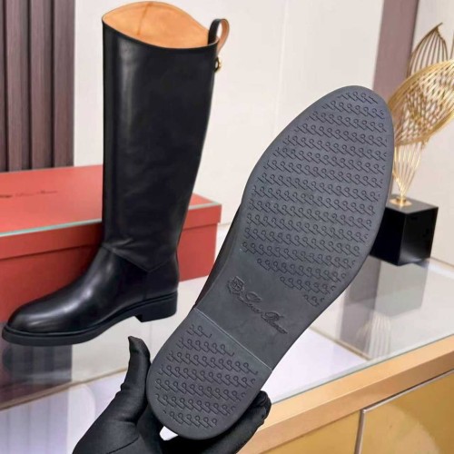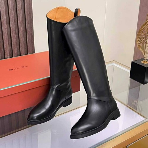 Черные сапоги Loro Piano из натуральной кожи. Стильные сапоги из новой коллекции объединяют в себе выразительность, комфорт и лаконичность. Классический черный цвет натуральной кожи делает дизайн сдержанным и универсальным. В нашем интернет-магазине вы можете купить копии сапог с доставкой по Москве и по всей России.