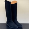 Черные сапоги Loro Piano из натуральной кожи. Сапоги из натуральной кожи на низком каблуке - универсальная основа для разнообразных образов. Широкое голенище не только обеспечивает качественную циркуляцию воздуха, но и дарит простор для стильных экспериментов. В нашем интернет-магазине вы можете купить копии сапог с доставкой по Москве и по всей России.
