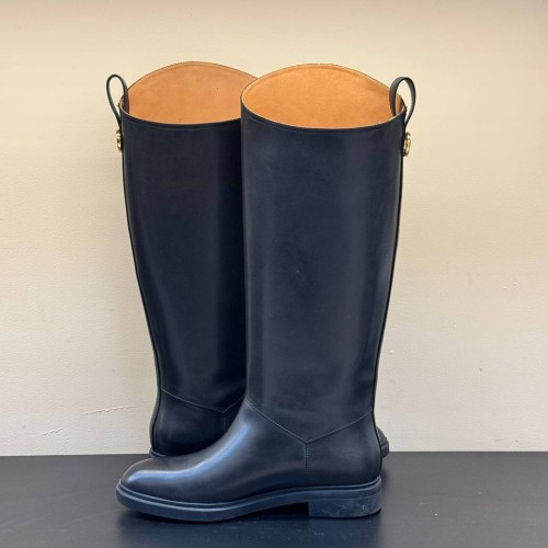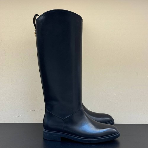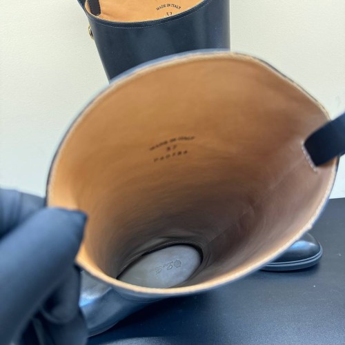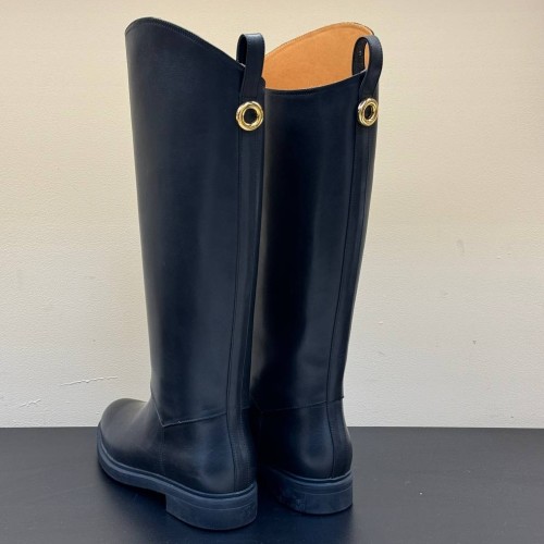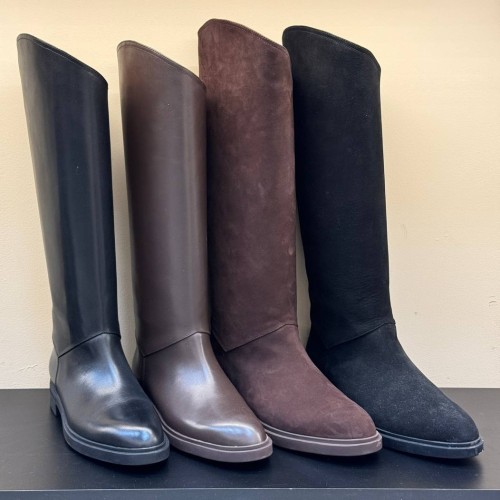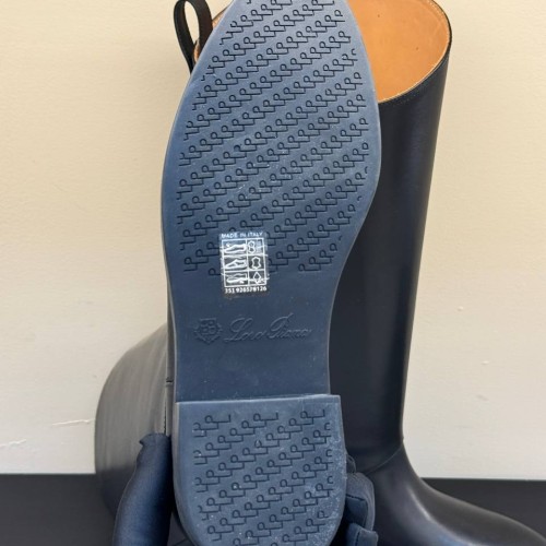 Черные сапоги Loro Piano из натуральной кожи. Сапоги из натуральной кожи на низком каблуке - универсальная основа для разнообразных образов. Широкое голенище не только обеспечивает качественную циркуляцию воздуха, но и дарит простор для стильных экспериментов. В нашем интернет-магазине вы можете купить копии сапог с доставкой по Москве и по всей России.