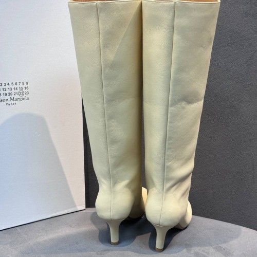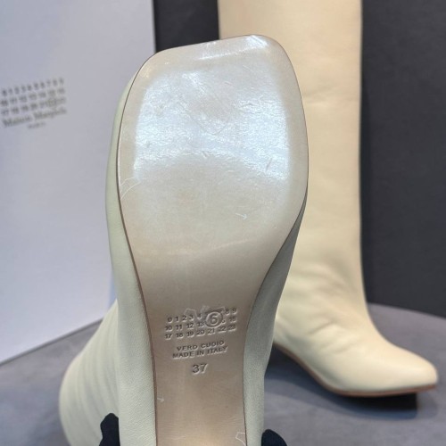 Бежевые женские сапоги Maison Margiela из натуральной кожи. В переменчивую погоду межсезонья ваш гардероб заслуживает модели в идеальном балансе стиля и комфорта. Устойчивый каблук и подошва обеспечивают удобство, а современный дизайн позволяет сделать модель универсальным дополнением для большинства повседневных образов. В нашем интернет-магазине вы можете купить копии сапог с доставкой по Москве и по всей России.