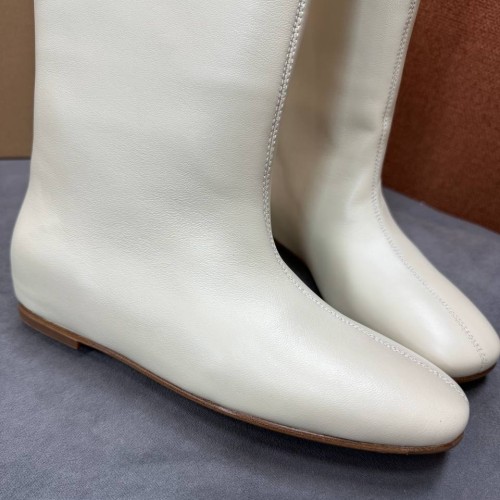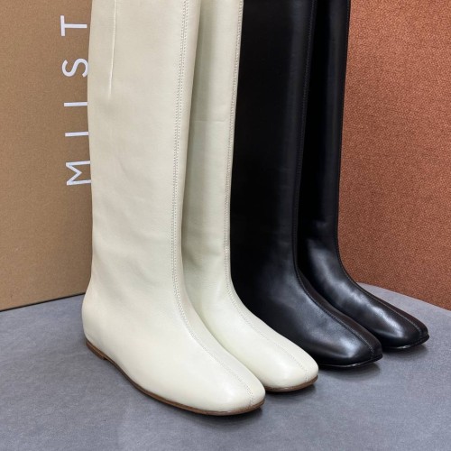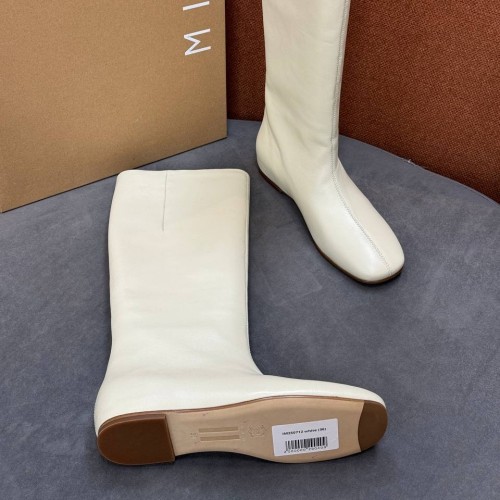 Белые сапоги Miista из натуральной кожи. Сапоги на низком каблуке - универсальная основа для разнообразных образов. Благодаря удобной посадке сапоги обеспечивают комфорт в течение дня и гармонично вписываются в повседневный гардероб. В нашем интернет-магазине вы можете купить копии сапог с доставкой по Москве и по всей России.