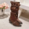 Женские коричневые сапоги R13 из натуральной замши со вставками из кожи. Модель отличается широкой формой голенища и заостренной носочной частью, а наличие ремней добавляет элегантности и удобства. Устойчивый каблук делает обувь практичной для повседневной носки. В нашем интернет-магазине вы можете купить копии сапог с доставкой по Москве и по всей России.