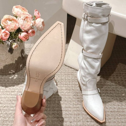 Женские белые сапоги R13 из натуральной кожи. Выразительная фактура и лаконичный дизайн делают пару универсальной для гардероба. Устойчивый каблук, а также подкладка и стелька позволяют чувствовать себя комфортно на протяжении всего дня. В нашем интернет-магазине вы можете купить копии сапог с доставкой по Москве и по всей России.