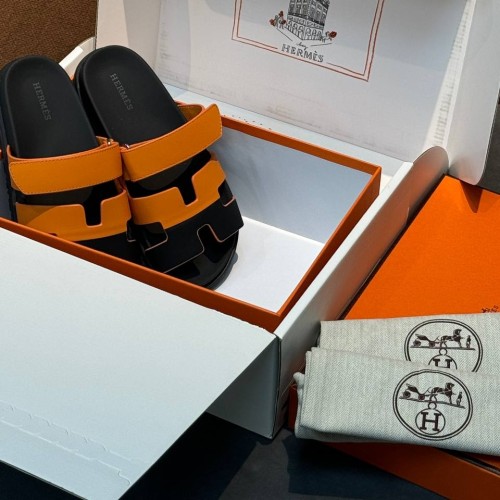 Женские черно-оранжевые шлепанцы Hermes из натуральной кожи. Шлепанцы из новой коллекции объединяют в себе выразительность, комфорт и лаконичность. Удобная подошва гарантирует превосходное сцепление с поверхностью, а застежки надежно фиксируют стопу. В нашем интернет-магазине вы можете купить копии шлёпанцев с доставкой по Москве и по всей России.