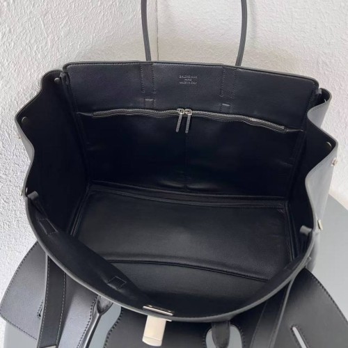 Черная сумка Balenciaga из натуральной кожи. Пример того, как аксессуар может стать центральным элементом образа и выразить индивидуальность владелицы. Благородный черный цвет подчеркивается мягкой натуральной кожей. В нашем интернет-магазине вы можете купить копии сумок с доставкой по Москве и по всей России.