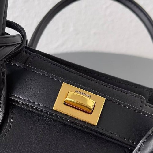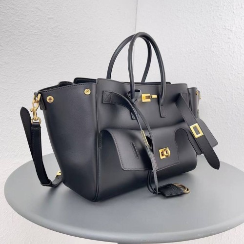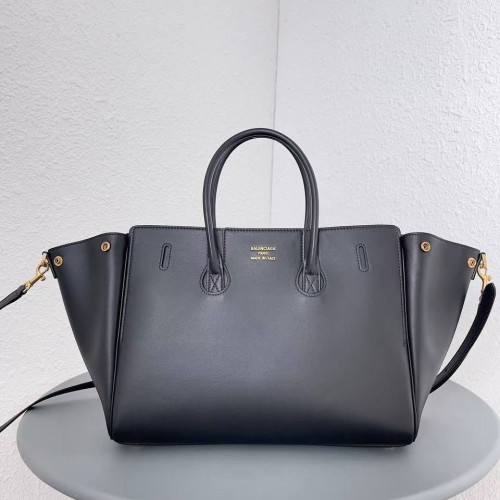 Черная сумка Balenciaga из натуральной кожи. Удобная форма уравновешивает объемный силуэт и задает ему деловой тон. Сумка идеально дополнит как образы для похода в офис, так и расслабленные сочетания. В нашем интернет-магазине вы можете купить копии сумок с доставкой по Москве и по всей России.