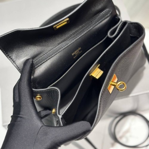 Черная сумка Balenciaga из натуральной кожи. Мягкая форма в сочетании с классическим силуэтом придает изделию особую актуальность. Лаконичный дизайн без лишних деталей позволяет легко сочетать сумку с повседневными и деловыми образами в самых разных прочтениях. В нашем интернет-магазине вы можете купить копии сумок с доставкой по Москве и по всей России.