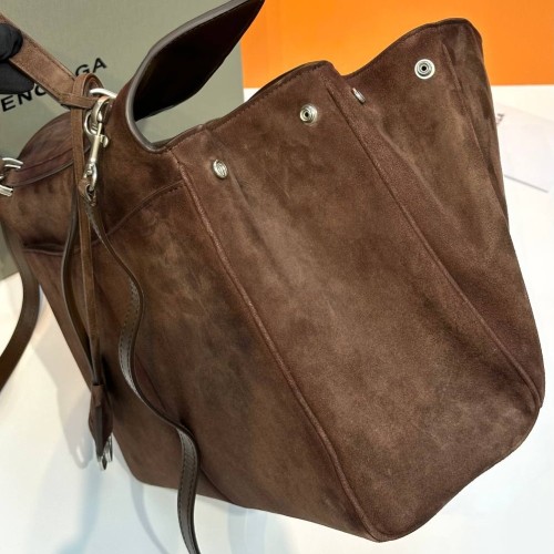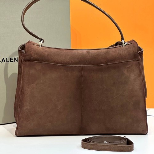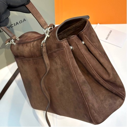 Сумка Balenciaga шоколадного оттенка из натуральной замши. Акцентность цвета уравновешивают геометричная форма, минималистичный дизайн и лаконичная фурнитура. Сумка будет главной деталью в повседневных сочетаниях. В нашем интернет-магазине вы можете купить копии сумок с доставкой по Москве и по всей России.