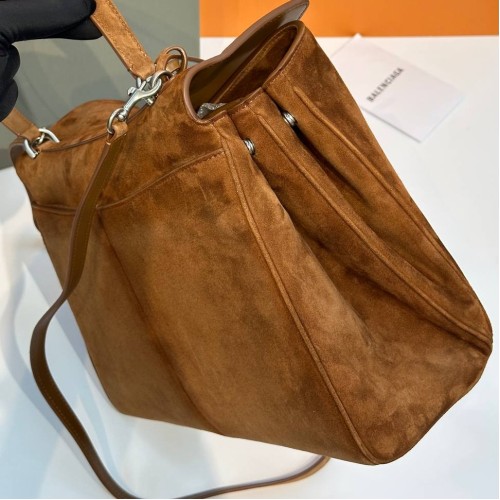 Коричневая сумка Balenciaga премиум качества из натуральной замши. Идеальное сочетание элегантности и функциональности для повседневного использования. Большой объем делает аксессуар идеальным как для работы, так и для отдыха, предлагая универсальность в использовании. В нашем интернет-магазине вы можете купить копии сумок с доставкой по Москве и по всей России.