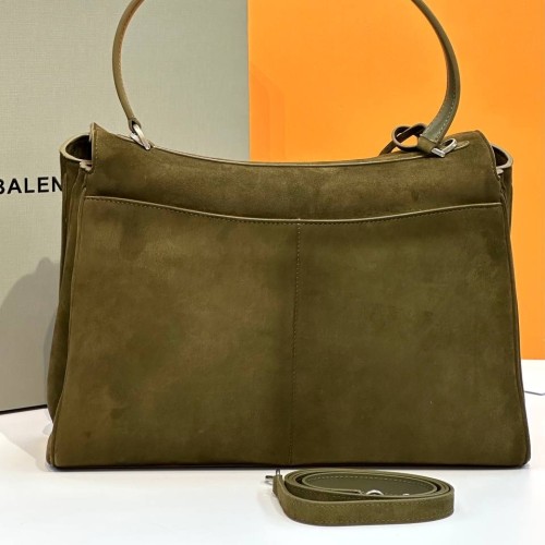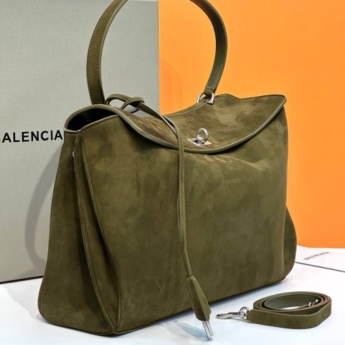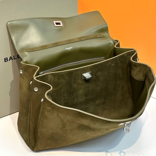 Стильная сумка Balenciaga оливкового оттенка из натуральной замши. Эта модель сумки по праву заслуживает звание культовой. Лаконичный аксессуар из сезона в сезон доказывает свою актуальность, становясь бестселлером несмотря на быстро переменчивую моду. Сочетание популярной прямоугольной формы и акцентной фурнитуры создают идеальный баланс между классикой и подиумными трендами. В нашем интернет-магазине вы можете купить копии сумок с доставкой по Москве и по всей России.