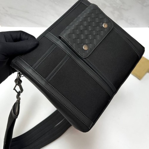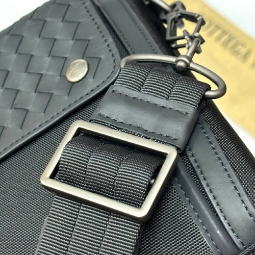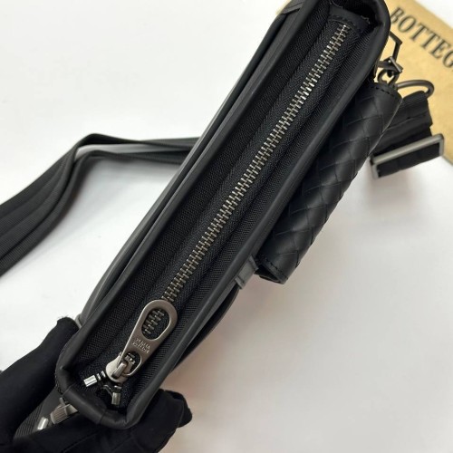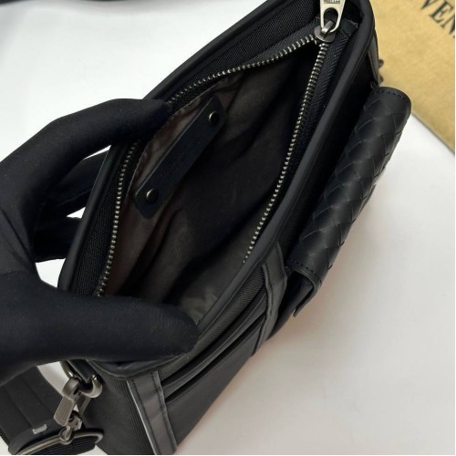Черная сумка Bottega Veneta из натуральной кожи и ткани. Благодаря сочетанию классической формы и акцентного плетения Intrecciatoо сумка может стать ярким акцентом даже в строгих сочетаниях. Удобный мессенджер идеально подойдет для активных будней. В нашем интернет-магазине вы можете купить копии сумок с доставкой по Москве и по всей России.
